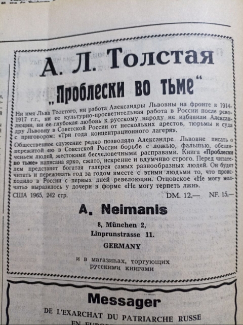 На фото - новый срок заключения А.Л. Толстой при коммунизме - "три года". Источник - официальная прижизненная реклама её книги в газете: Русская Мысль. Париж. 15 января 1966. С. 4 (и многодневно далее).