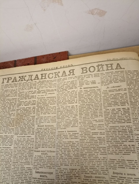 Первые акты Гражданской войны в России, исторически начатой большевиками с вооружённого выступления в Петрограде 3 июля 1917 года. Имя Гражданской войны становится привычным для русских газет. Вот и газета "Русское Слово" завела специальную рубрику "Гражданская война" размером на полную газетную полосу: номер от 8 ноября 1917.
