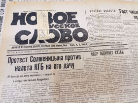 Кровавый режим в позднем СССР. Дача у опального писателя. Протест А.И. Солженицына от 15 августа 1971 года. Газета "Новое Русское Слово" от 16 августа 1971. Нью-Йорк. С.1.