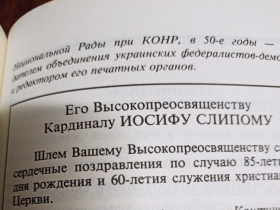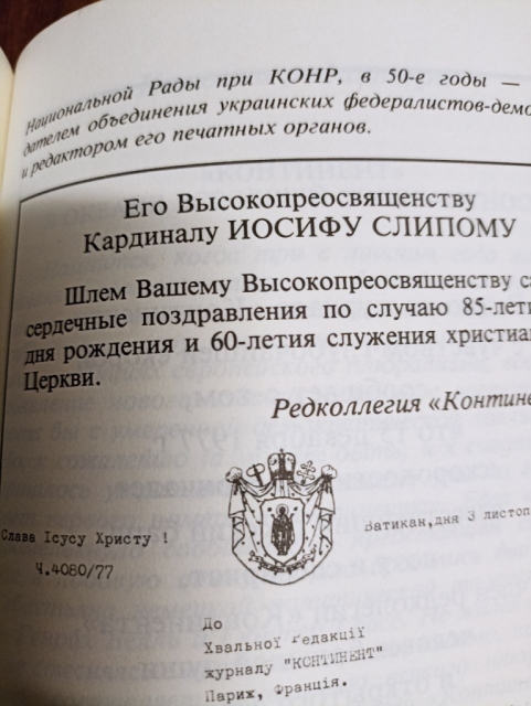 Это сделал русский эмигрантский журнал "Континент" в 1977 году, публично и печатно поздравив с 85-летием украинского греко-католического кардинала Иосифа Слипого (1892-1984), после начала Войны в 1941 году печатно и публично приветствовавшего Гитлера как "Гитлера-освободителя".