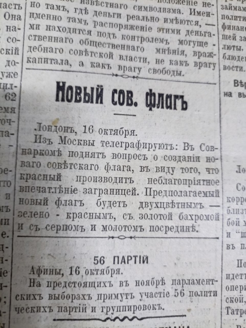 Слухи 1926 года о новом флаге СССР - зелёно-красном.