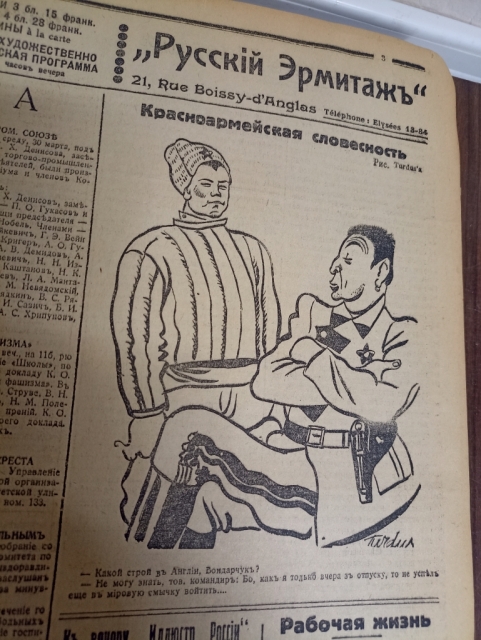 Типы Красной Армии в глазах русской эмиграции: крестьянская масса и интеллигентские комиссары и командиры. Источник: Возрождение. Париж. 4 апреля 1927. С.3.