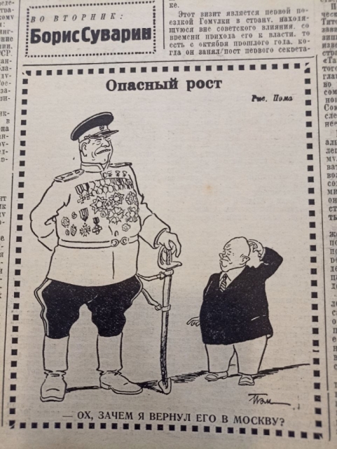 Карикатура на Жукова и Хрущёва из эмигрантской газеты: Русская Мысль. Paris. 12 сентября 1957. С. 1.